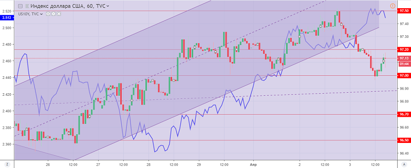 On Wednesday, the US dollar index closes trading against the basket of competitors with the update of a low at the level of 97.00. The main decline of the American dollar can be traced against European and commodity currencies. Strengthening commodity currencies was caused by the continued optimism in the stock markets and the positive dynamics of raw materials. Support for European currencies have data on the UK. So, the message that Prime Minister T. May was trying to negotiate with the opposition significantly increased optimism about Brexit.