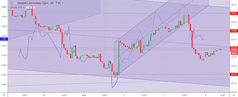 As a result of Friday’s trading, the US dollar index updated a low at the level of 97.40, indicating that the general downtrend of the last weeks remained, but also retaining the potential to form movement against Friday. This also contributed to the fundamental factors.