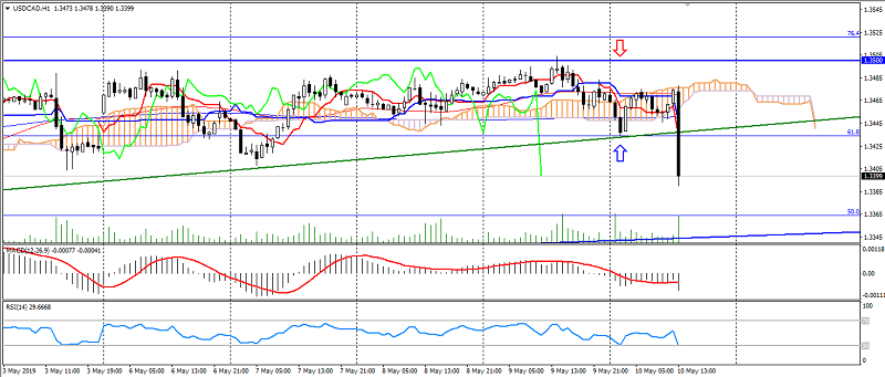 Against the background of weak data on the US inflation and employment growth in Canada, the USD/CAD pair was under the considerable pressure, having updated a low at the level of 1.3400. This broke the formation of the ascending triangle, which was traced from the beginning of May. Such a rapid collapse of this pair limits its further reduction by oversold and support levels: 1.3380 and 1.3360. Resistance levels are located at the levels: 1.3440 and 1.3460.
