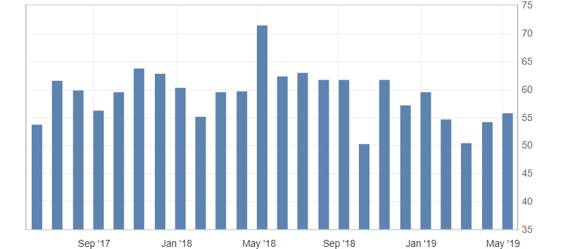 Fig. 2. Graph of business activity index (PMI) Ivey in Canada
