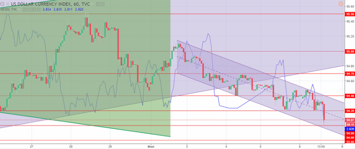 The index of the US dollar against the basket of major competitors has updated the monthly low at 94.00. And now it is limited to oversold, but retains the potential to decline on negative sentiments for the American dollar.