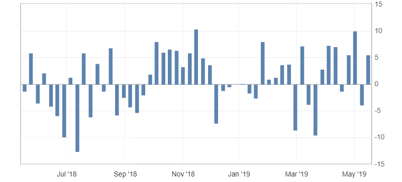 - Crude oil inventories, fact 5.431M, forecast -0.800M.