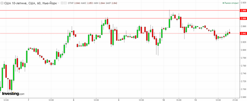График 10-летних облигаций США. Текущая цена – 2.840.