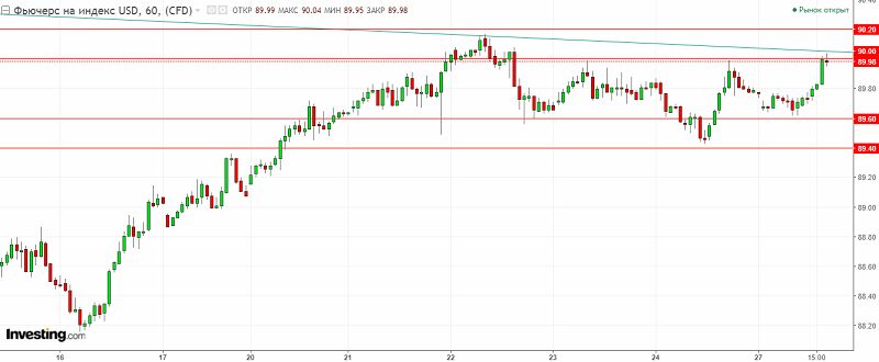 График индекса доллара США. Текущая цена – 89.90.