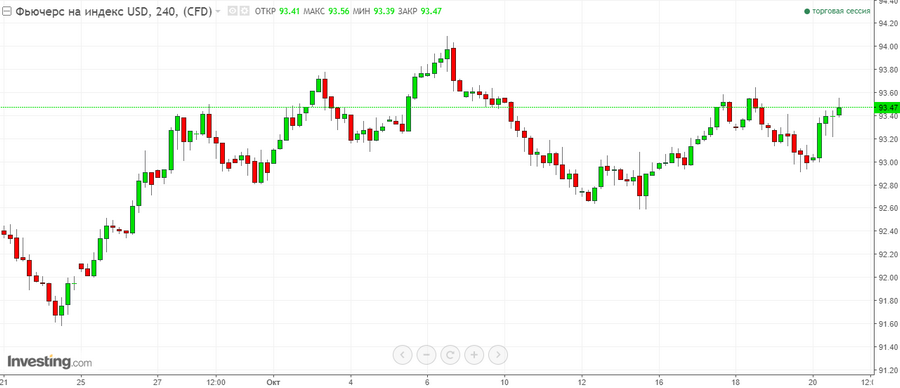 Вместе с этим индекс доллара США закрывается на недельных максимумах, тем самым формируя фигуру «чашка с ручкой» которая указывает на дальнейший рост индекса при закреплении цены выше отметки 93.60. В случае отработки фигуры стоит ожидать теста сопротивлений на уровне: 94.00 и 94.20.