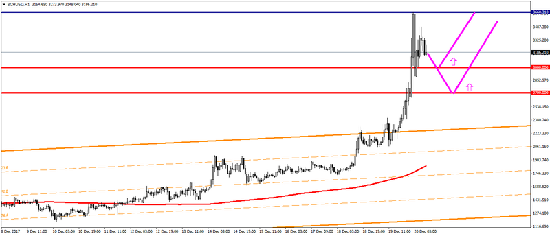 Технический анализ: Биткоинкэш на фоне ослабления классического биткоина обновил свой исторический максимум к отметке $3 660,31, прибавив со вчерашнего дня около 80% стоимости. На данный момент цена биткоинкэш перешла к коррекции, при этом основные уровни поддержки рассматриваю у отметок $3 000,00; $2 700,00, от которых возможно возобновления роста цены криптовалюты.