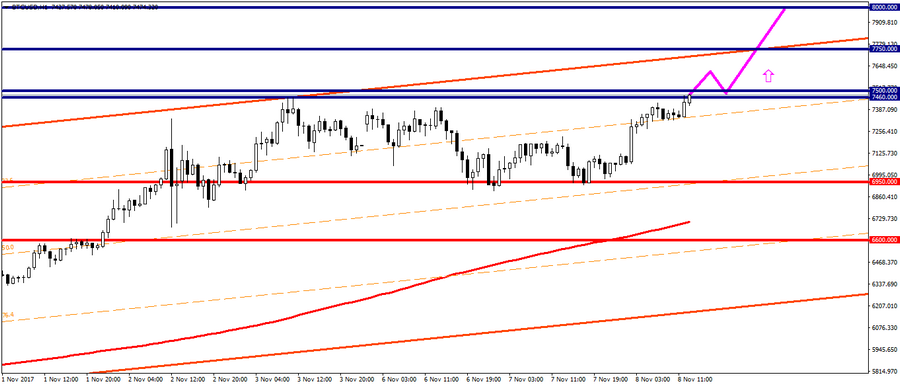 В ходе сегодняшних торгов цена самой популярной в мире криптовалюты протестировала свою максимальную отметку на уровне $7458.97, что является сигналом возможного очередного обновления максимальной цены криптовалюты. Основную поддержку цене криптовалюты оказывает ожидание запуска торговли фьючерсами на Bitcoin крупнейшей фьючерсной биржей CME Group. Также дополнительную поддержку оказывает намерение Ирана легализировать в стране Bitcoin См. https://esterholdings.com/ru/2017/11/07/bitcoin-sohranyaet-polozhitelnyj-nastroj-2/.