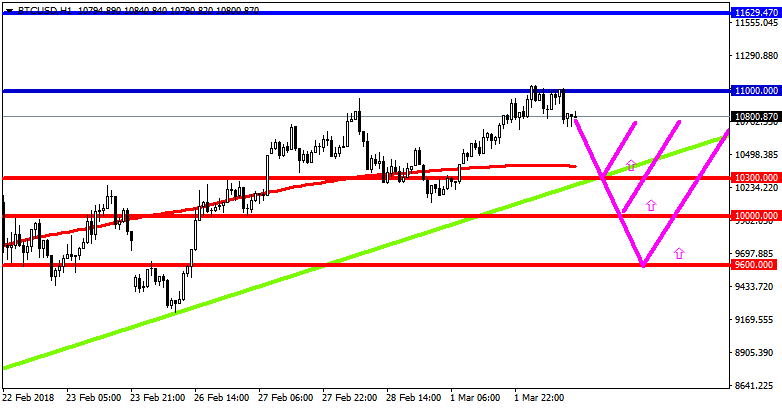 Рис. График BTC/USD. Текущая цена $10 800.870.