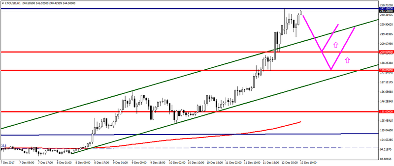 Технический анализ: На данный момент цена Litecoin остается вблизи исторического максимума, в случае коррекции цены, основными уровнями поддержки выступят отметки $200.00; $180.00.