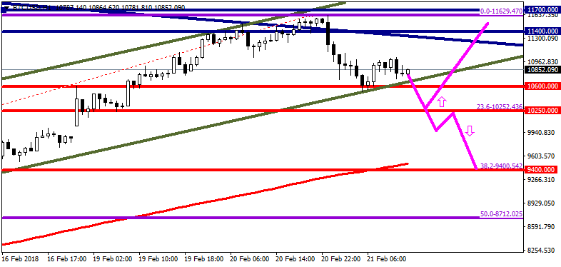 Основные рекомендации: Покупки стоит рассматривать у отметки $10 250,00 с потенциалом роста к отметкам $11 400,00, $11 700,00. В случае если цена закрепится ниже отметки $10 250,00, стоит ожидать дальнейшего ее снижения к отметке $9 400,00.