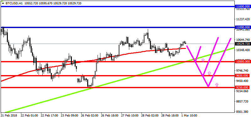 Технический анализ: Цена биткоина продолжает движение в восходящем канале, который берет свое начало с 6 февраля. Основные уровни поддержки, от которых стоит рассматривать покупки криптовалюты, сохраняются у отметок $10 000,00, $9 600,00, $9 250,00, с целью роста к отметкам $11 000,00, $11 600,00.
