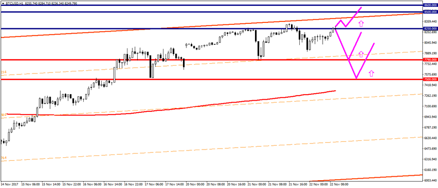 Рис. График BTC/USD текущая цена –$ 8243.00.