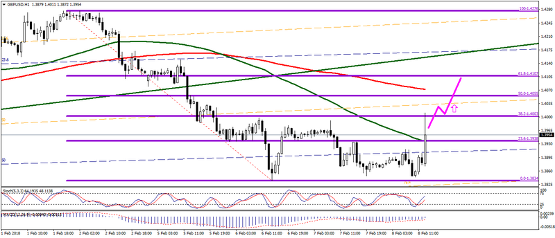 Технический анализ: Пара GBP/USD резко выросла достигнув отметки 1,4011, которая находится в районе уровня 38,2 по Фибоначчи на Н1. Сохранение цены ниже уровня 38,2 по Фибоначчи, будет говорить о сохранении нисходящего тренда в краткосрочном периоде.