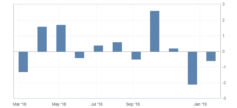- Объем поставок гражданских средств производства (без учета воздушных судов) (м/м), факт -0,2%, предыдущее значение -0,1%.