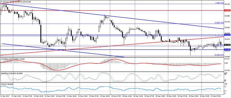 В результате индекс доллара США, после сдержанной коррекции в начале дня, снова оказался под давлением и возобновил снижение к уровню поддержки 93.200. Второй значимой поддержкой выступает отметка 93.100-000. Также динамика американской валюты продолжает зависеть от данных по налоговой реформе в США.