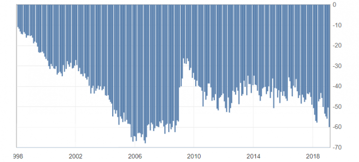 - Сальдо торгового баланса (дек), факт -59,80B, прогноз -57,90B.