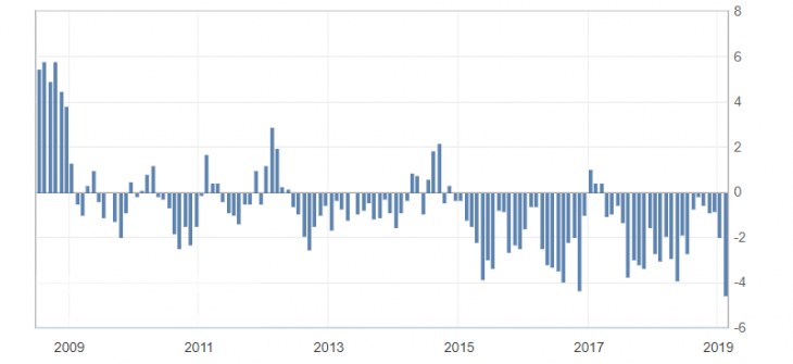 - Сальдо торгового баланса (дек), факт -4,59B, прогноз -1,70B.