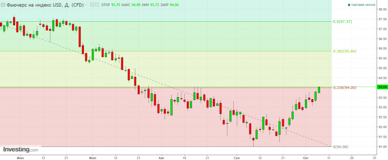 Но учитывая, что отчёт оказался неоднозначным восходящая динамика доллара будет также неоднозначной и непродолжительной. К тому же индекс доллара продолжает оставаться ограниченным уровнем 94.00 (Фибо 23.6 от максимума 2017 года).