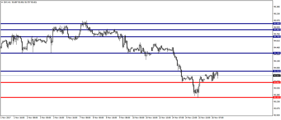 На фоне данной статистики индекс доллара США отступил от сессионного максимума у отметки 93,918 и продолжает движение в узком диапазоне.