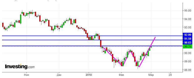 Рис. График индекса доллара США. Текущая цена DXY – 90.76.