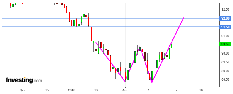 Рис. График индекса доллара США. Текущая цена DXY – 90.53.