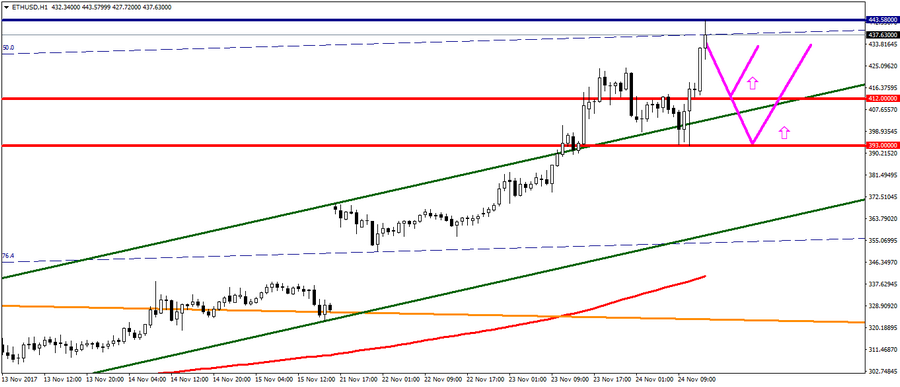 Рис. График ETH/USD текущая цена –$ 437.63.