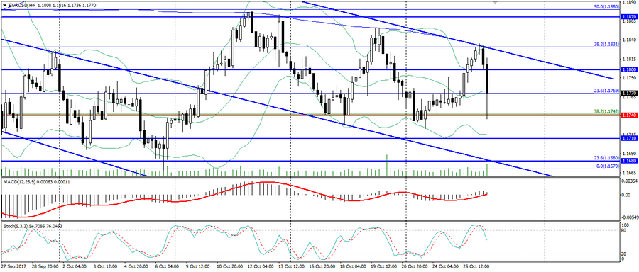 В результате пара EUR/USD протестировала поддержку на уровне 1.1740 и отбилась на коррекции евро. Но, учитывая снижение евро в кроссах, динамика данной пары будет оставаться нисходящей и ограничиваться существующим нисходящим трендом от сентября текущего года. Значимым уровнем поддержки по-прежнему остаются уровни: 1.1770 и 1.1740-30.