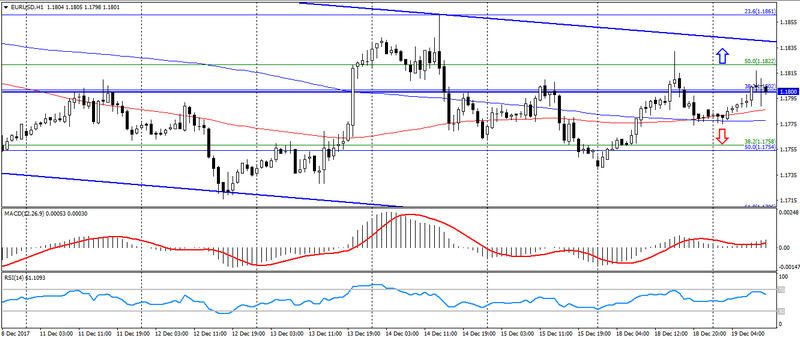 После вчерашнего роста пары EUR/USD, на рынке сохраняется восходящий тренд и некоторая неопределённость, что вызвано торгами данной пары возле уровня 1.1800. В свою очередь, пара остается ограниченой диапазоном от 1.1780 до 1.1830.