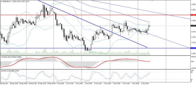 Несмотря на значительное замедление нисходящего тренда пары EUR/USD данный нисходящий тренд сохраняется, на что указывают торги ниже уровня 1.1800. Но и говорить о продолжении нисходящего тренда рано, пока пара остаётся выше зоны: 1.1710-1.1680. Дополнительным фактором неопределённости выступают предстоящие данные по занятости в США и политическая неопределённость, вызванная референдумом в Каталонии и сменой главы ФРС США.