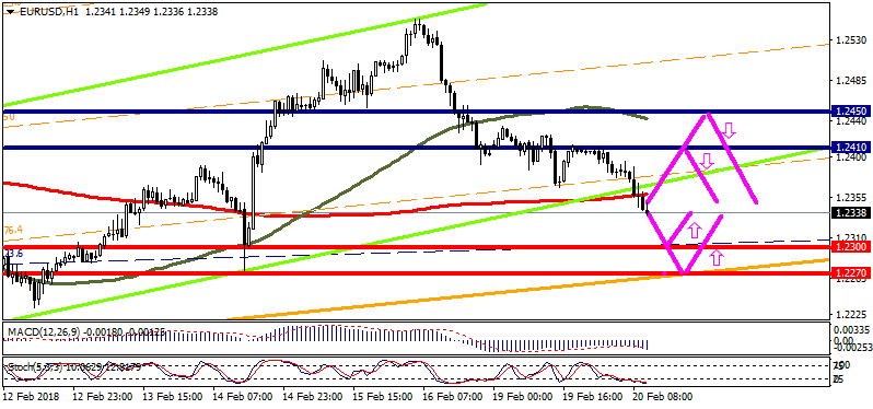 Технический анализ: В ходе торгов вторника пара EUR/USD закрепилась ниже линии поддержки восходящего канала на Н1, что является сигналом возможного продолжения снижения цены инструмента. На данный момент основные уровни поддержки рассматриваю у отметок 1,2300, 1,2270. Уровни сопротивления рассматриваю у отметок 1,2410, 1,2450.
