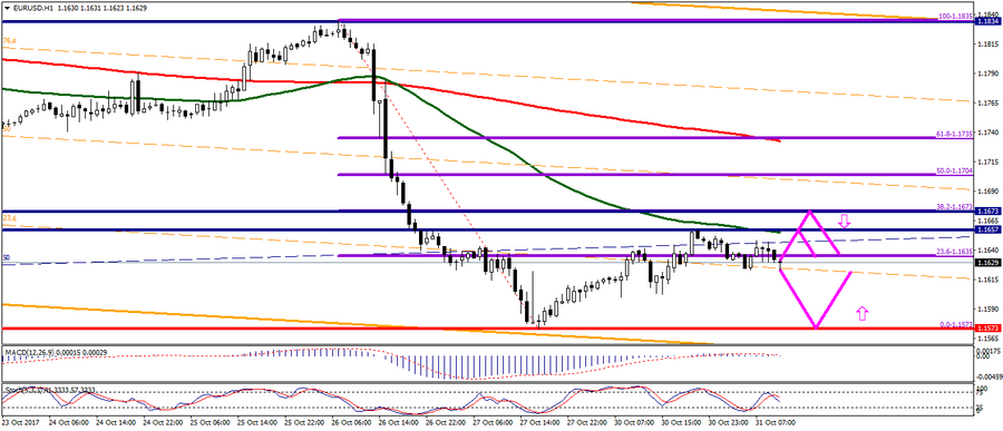 Технический анализ: Несмотря на движение в узком диапазоне с начала торговой недели, по паре EUR/USD сохраняется нисходящий потенциал на фоне результатов заседания ЕЦБ на прошлой неделе. Подробнее см. https://esterholdings.com/ru/2017/10/26/euro-is-under-pressure-13/. На данный момент основные уровни сопротивления рассматриваю у отметок 1,1657; 1,1673. Уровень поддержки рассматриваю в районе 1,1573.