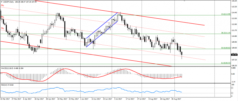 После окончательного формирования фигуры «двойная вершина» и пробития уровня шеи данной парой на уровне 108.80. Остаётся ожидать теста уровня поддержки на отметке 106.50. К тому же пара продолжает оставаться в нисходящем канале, который прослеживается с начала текущего года. И вкладывается в коррекционную модель по уровням Фибоначчи, которым отвечают основные уровни поддержки и сопротивления.