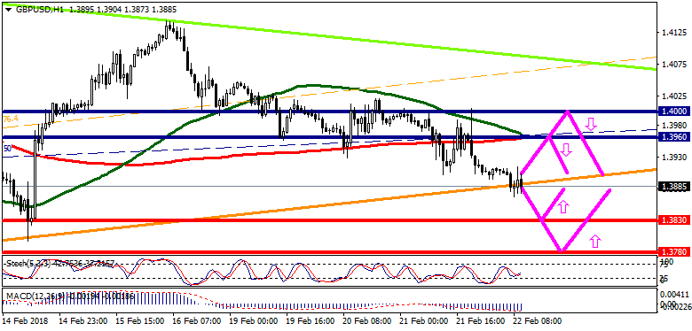 Технический анализ: Пара GBP/USD сохраняет нисходящее движение в краткосрочном периоде. На данный момент Ближайшие уровни поддержки рассматриваю у отметок 1,3830, 1,3780. Уровни сопротивления рассматриваю у отметок 1,3960, 1,4000.