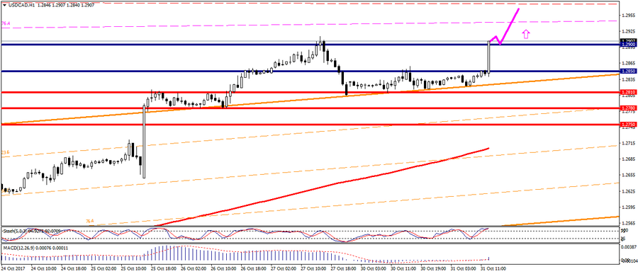 На фоне данной статистики пара USD/CAD выросла более чем на 50 пунктов и тестирует уровень сопротивления у психологии 1,2900. Возможно, что пара перейдет консолидации в районе психологии 1,2900, в ожидании выступления Полоза, в ходе которого может продолжить свое движение вверх. Дополнительно см. https://esterholdings.com/ru/2017/10/31/kanadets-v-ozhidanii-2/