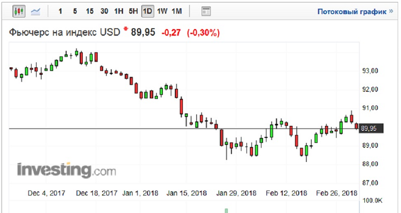 Как мы видим, негативное влияние присутствует, но называть его паникой, конечно, не обосновано. Индекс уверенно держится выше значения 24000,00. И, после падения первой половины февраля 2018 г. до уровней 23500, выглядит достаточно уверенно. Говорить о дальнейшем снижении стоит только после уверенного не ситуативного пробоя уровня 23000,00 и стабильного закрепления ниже его.