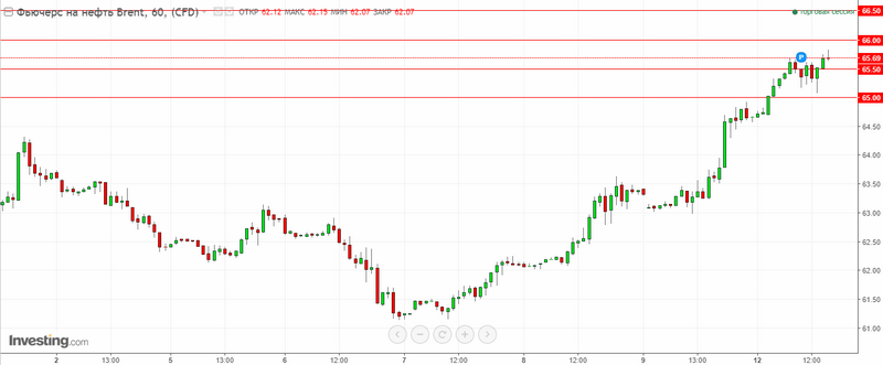 - Ближайшие уровни сопротивления: для WTI – 59.00 и 59.50$ за баррель, для Brent – 66.00 и 66.50$ за баррель.