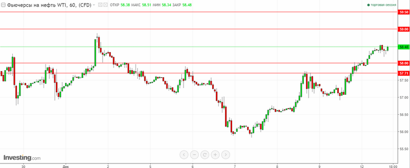 - Поддержкой выступают отметки: для WTI – 58.00 и 57.70$ за баррель, для Brent – 65.50 и 65.00$ за баррель.