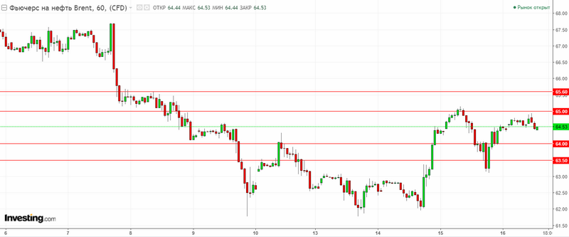 График Brent. Текущая цена – 64.50$