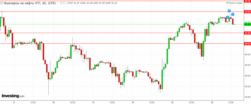 График WTI. Текущая цена – 61.40$