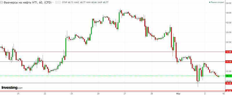 График WTI. Текущая цена – 60.80$