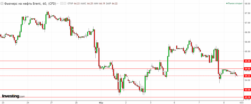 График Brent. Текущая цена – 64.20$.