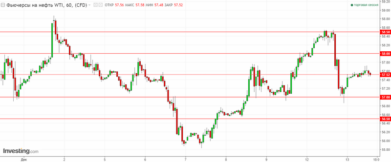 - Ближайшие уровни сопротивления: для WTI – 58.00 и 58.50$ за баррель, для Brent – 64.50 и 65.00$ за баррель.