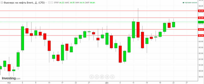 • Поддержкой выступают отметки: для WTI – 57.60 и 57.00$ за баррель, для Brent – 64.00 и 63.50$ за баррель.
