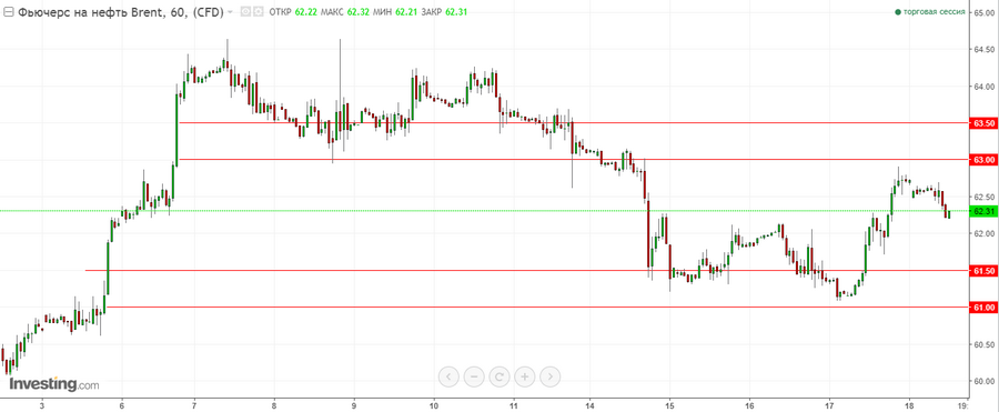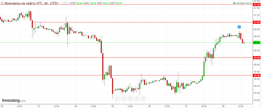 - Ближайшие уровни сопротивления: для WTI – 57.00 и 57.50$ за баррель, для Brent – 63.00 и 63.50$ за баррель.