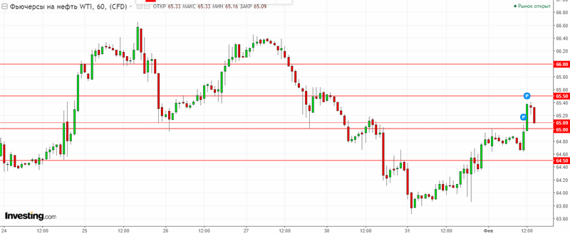 График WTI текущая цена – 65.10$