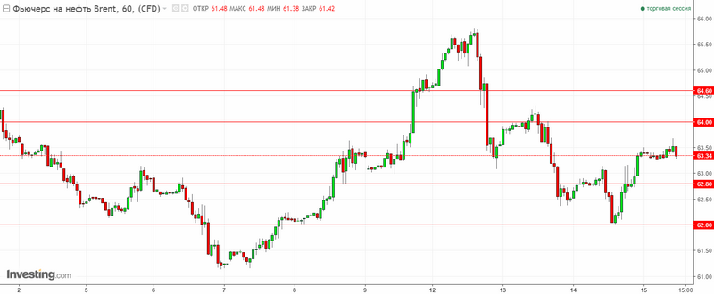 - Поддержкой выступают отметки: для WTI – 57.00 и 56.60$ за баррель, для Brent – 62.80 и 62.00$ за баррель.
