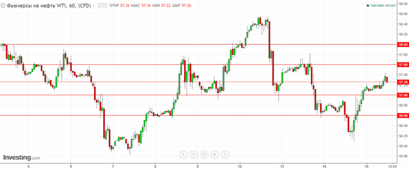 - Ближайшие уровни сопротивления: для WTI – 57.60 и 58.00$ за баррель, для Brent – 64.00 и 64.60$ за баррель.