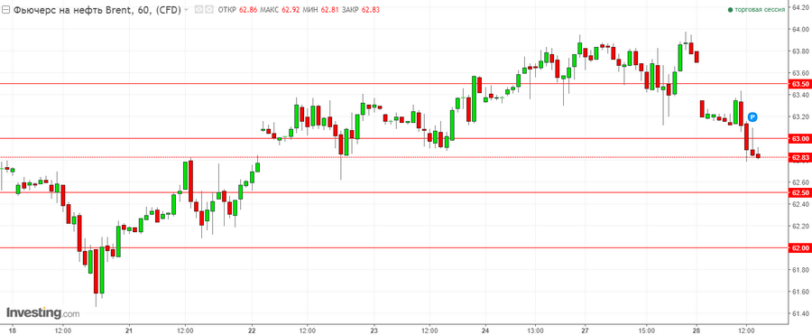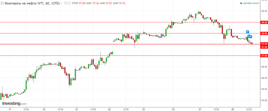 - Ближайшие уровни сопротивления: для WTI – 58.00 и 58.50$ за баррель, для Brent – 63.00 и 63.50$ за баррель.