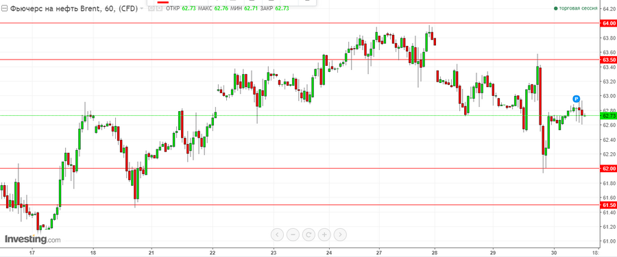 - Ближайшие уровни сопротивления: для WTI – 58.00 и 58.50$ за баррель, для Brent – 63.50 и 64.00$ за баррель.
