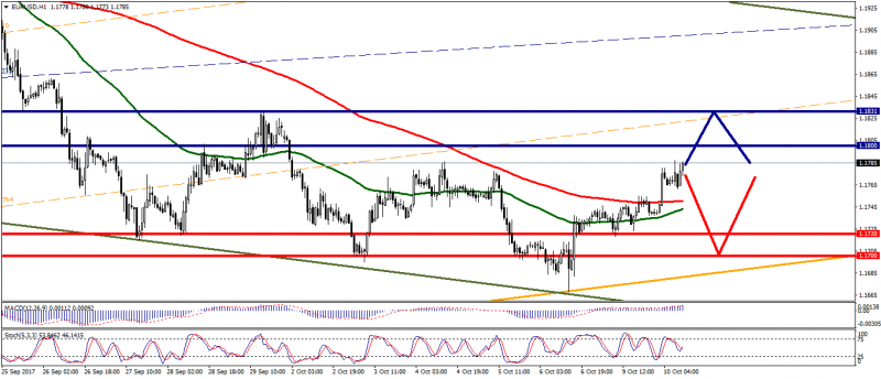 Технический анализ: На данный момент пара EUR/USD ведет торги у отметки 1,1780, основным сопротивлением выступает район 1,1800-1,1831, преодоление которого может быть сигналом об изменении направления тренда в краткосрочном периоде. Основным уровень поддержки при этом выступает район 1,1720-1,1700.
